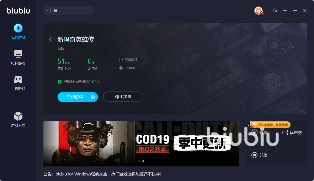 小编这就为大家演示一下如何用biubiu给新玛奇英雄传加速吧: