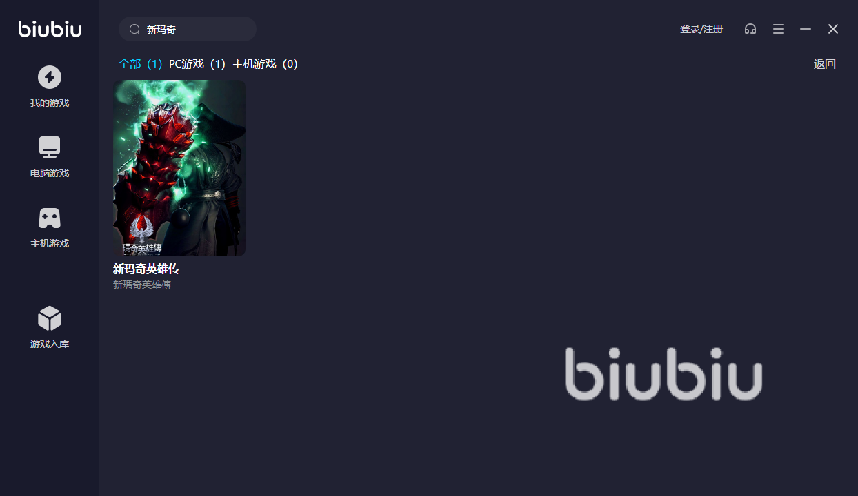 1. 我们现在官网安装好biubiu加速器的客户端,安装完成后立即运行即可,进入加速器主页之后就可以用右上角的登录按钮打开登录界面,注册完成之后登录即可。我们按自己的需要购买相应的会员,就可以加速新玛奇英雄传了。