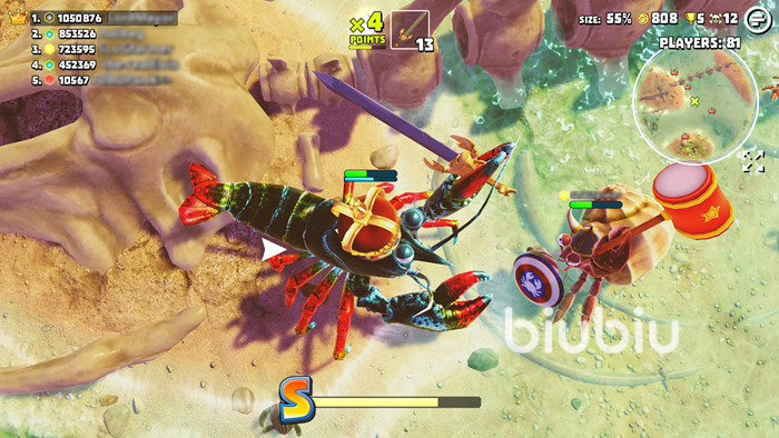 在游戏中我们将创建属于自己的螃蟹角色,通过不断游玩来提升等级、获取更加强大的属性和能力,我们还能够获取到一些技能从而在战斗中给予对手痛击。在游玩之后玩家能够获取各种的装扮物品以及皮肤,彰显自己的个性,成为最靓的螃蟹。对局中玩家需要通过搜刮来装配上不同的武器,它们带有不同的战斗效果,而且还拥有克制的关系。如何利用这些武器更快地击退敌人也就对大家的操作以及策略能力有了更高的要求。如果在征战的时候碰到网络卡顿会让我们落入下风甚至直接被吊打,这个时候开启biubiu加速器就能够避免这种情况发生,从而让我们获取到更好的战斗成绩。