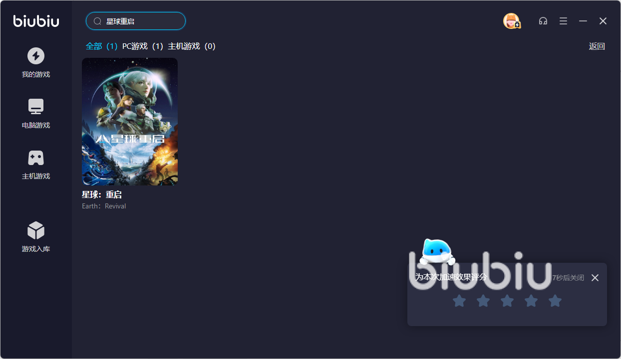 之后,在biubiu自带的搜索界面搜索星球重启即可,在星球重启出现后,选择添加游戏,星球重启马上就会出现在我们的biubiu加速界面啦!在这个界面中我们还可以发现其余上千款的热门游戏哦,这些都是biubiu加速器支持加速的,怎么样,biubiu夸张的游戏池可以证明小编并没有骗大家吧~