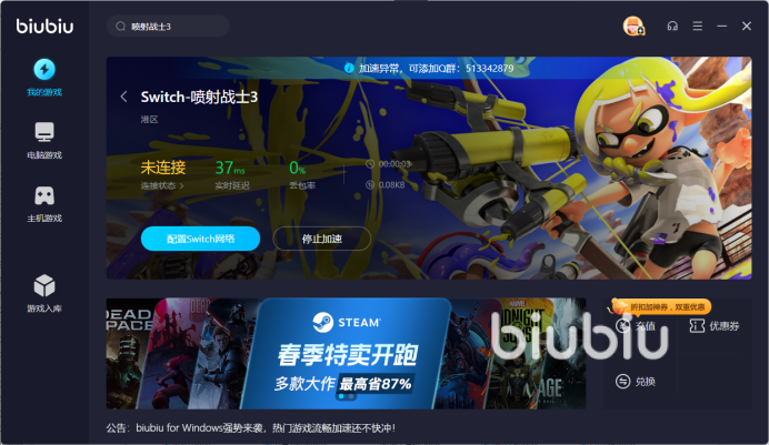 以上这些便是小编为您介绍的关于喷射战士3这款游戏的加速情况和所推荐的加速器。目前biubiu加速器对于新注册的用户有种各种各样的优惠活动,大家可以根据小编在文章上方的连接对这款加速器进行下载,然后就可以体验到无卡顿和掉线的喷射战士3了。