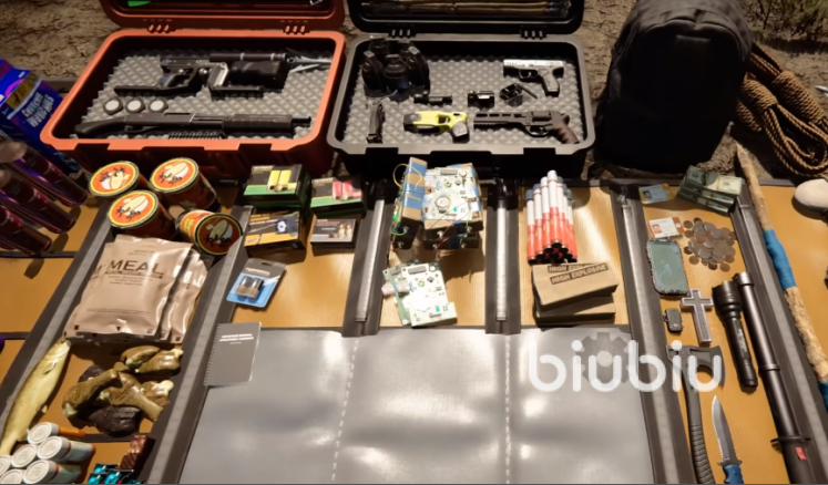 首先我们获得的装备越多,生存下来的几率就越大。我们需要先去到地图右上角的山洞,有一个必拿的装备:绳索枪。拿完后出来有一条河流,河流中游,有一个骷髅头堆的位置,会获得一个把武器:电棍。再去地图左下角沿海的洞穴仔细搜索可以拾取到潜水服,电击枪,可以先进行存档,再拿潜水服。