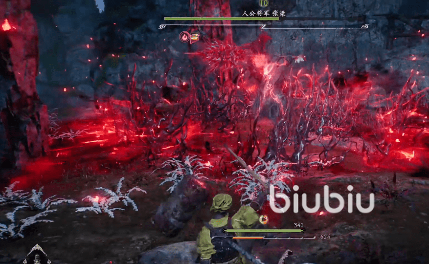 首先在开打前,各位小伙伴们要先了解一下基础操作和键位。格挡技能适用于在范围扩大的红光攻击中。我们需要一直按住格挡键,这样可以免疫大部分伤害,就算化解失败也不会掉大量血。如果在红点这一阶段拿捏不好化解时机,如果小伙伴们可以适当拉远距离,给自己一定的反应时间。我们可以先使用棍子进行一次较轻力度的攻击,再进行重攻击,按轻重轻重的击打顺序如此往复,可以掌握好自己的节奏。在使用的奇术领域,小编建议大家使用火属性,可以增添一个灼烧增伤的增益效果。化解三次红点就可以召唤神兽,正式开启这一剧情了。