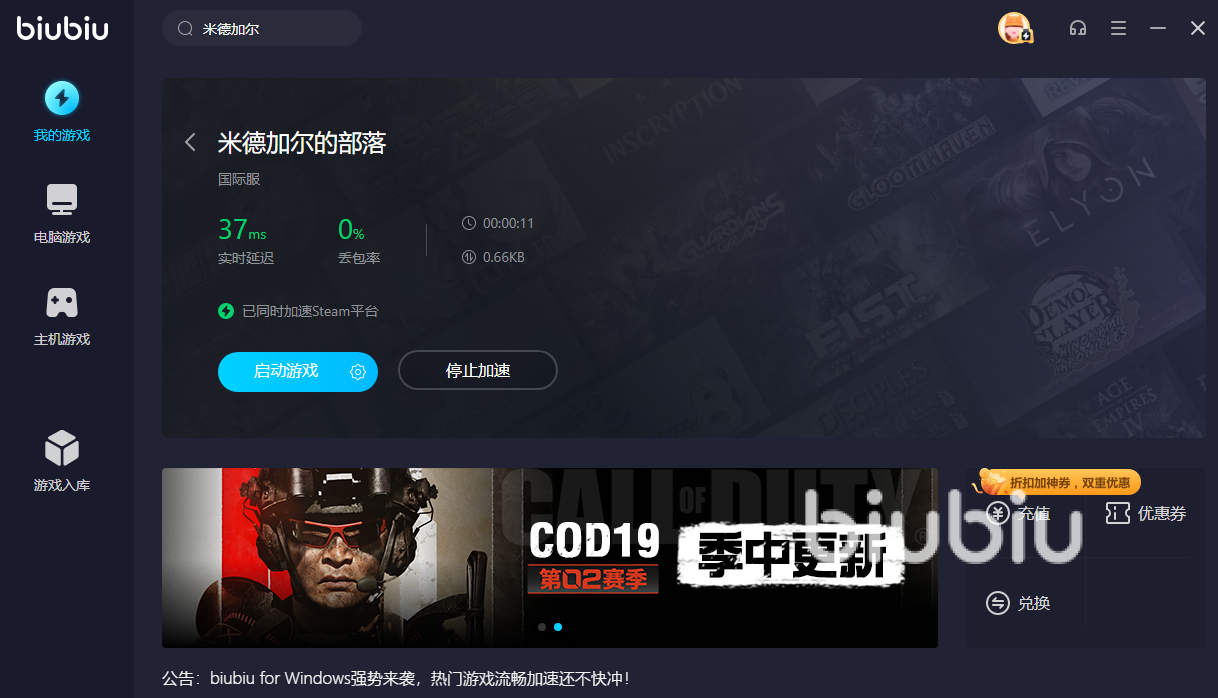 在米德加尔的部落中,我们将扮演一位四处旅行的游侠,守卫着世界树,抵御着各种邪恶势力的攻击和侵扰。游戏拥有着出色的动态难度设计以及经典的rpg式玩法,玩家们需要联机组成一个具有前排,输出,奶妈的合理团队,哪一个方面的短板都有可能引发致命的灾难,所以更需要小伙伴们进行默契的配合。随着游戏进程的不断加深,野外也会刷出各种各样的高级邪恶怪物,给玩家们处于一种需要不断努力升级的紧迫感之中。虽然这款游戏是不可多得的佳作,但是因为是由小公司出品的,制作组可能没有预料到大火的情况,进而导致米德加尔的部落对小伙伴们的网速要求奇高无比,双休日的晚上,被挤爆的服务器想必也让无数想在米德加尔的部落中冒险的小伙伴们头疼不已吧!接下来就由小编来为大家介绍biubiu加速器,相信小伙伴们在使用了这款加速器后,一定能完美解决这些问题。