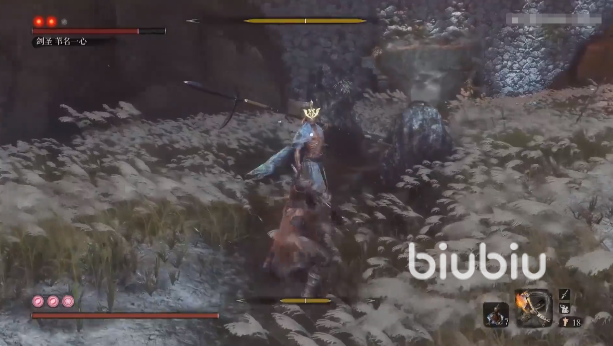 苇名一心难在结局是连番战斗车轮战,在开局苇名弦一郎秒杀主角的地方,芦花荡里最后的战斗开始了,开局一郎就会释放不死斩,玩家可以绕后同样给他放不死斩,等他跳起来的时候,玩家就可以按住防御了,然后他就会释放危险攻击,分为低段或者突刺两种,突刺使用看破,等到他冲过来的时候玩家再看破,抓好时机,低段就可以跳跃反击。打败弦一郎之后他就会自杀,然后召唤出巅峰时期的剑圣一心,这时候其实一心已经去世了,这算得上完结之战,两代英雄来一场武力的较量,还是比较有日本武士道精神的。