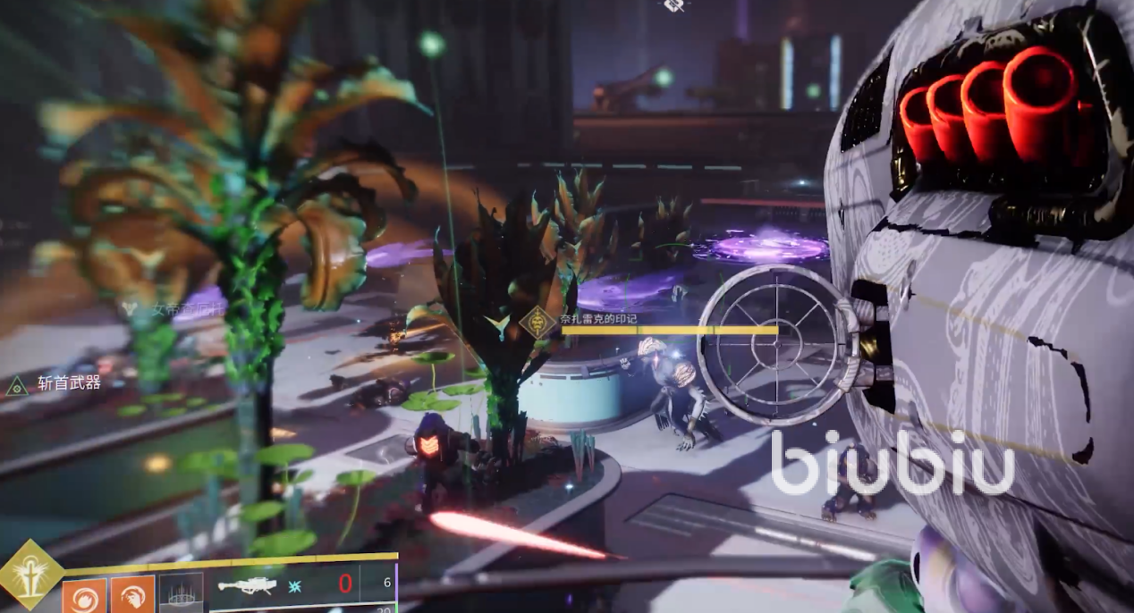 之后会出现两个精英boss:奈扎雷克的印记。它会以玩家为攻击目标,头顶会有很一个紫色的光环,光环会发射多道弧形的攻击波,小心不要被打中。可以先拉扯一个boss,将其击杀,再去处理另一个。