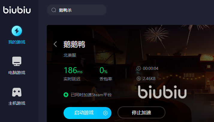 只不过鹅鸭杀虽然好玩,但是却是一款海外游戏,很容易出现网络延迟的问题。还好有biubiu的存在能够让你迅速的连接海外的网络。并且不用自己费力的去选择IP地址以及更改网关什么的复杂操作,只需要轻轻的点击相关游戏并且进行加速即可。这样你就能够获得低延迟并且网速飞快又稳定的网络环境,因为游戏里面的节奏非常快,如果因为你的动作以及信息发送延误的话,就很容易让鸭子成功的获胜。此外,也会影响你的游戏体验,毕竟你人物走动起来非常慢的话,玩起来也不够过瘾。