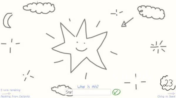 这款游戏最大特点就是邀请自己好朋友登陆其中,一起联机挑战才能获得最佳体验。具体玩法有两种,一种是每个人按照词语来进行猜谜,而后再紧接着画出来,当最终结果展示出来之后,很多玩家画出非常搞笑的内容,就能引起大家哄堂大笑,气氛非常轻松。还有一种玩法就是极其传统的类型,画好之后几个玩家轮流进行竞猜,谁猜到的最接近就能获得更高分数,最终按照分数来确定出第1名。游戏没有人数上的限制,玩家数量多些可玩性会更高。