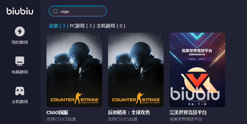 现在大家都知道在国外玩csgo国服用什么加速器好了吧,biubiu加速器就是不错的选择,它又可以加速游戏,又可以帮助用户快速下载和更新游戏。软件除了支持电脑游戏的加速外还能加速手机游戏,只要到官网去下载手机版就可以了,要是你也心动的话现在就赶紧来体验吧。
