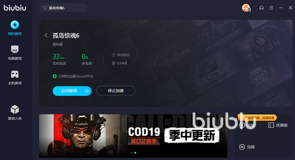 目前PC版本作的主流平台还是Uplay,所以在biubiu中也是率先对Ubi版进行了加速服务的开放。大家点击上方链接就能够下载这款加速工具,打开之后搜索游戏的名称进入到加速界面,点击下方的按钮就可以在很短的时间内迅速开启加速,不需要长时间的等待。如果是新用户,此前没有使用过加速器,在注册登录之后还可以获取到免费试用3天的福利,正好借此之前大家可以了解一下biubiu的操作以及加速效果,然后再决定要不要继续使用。