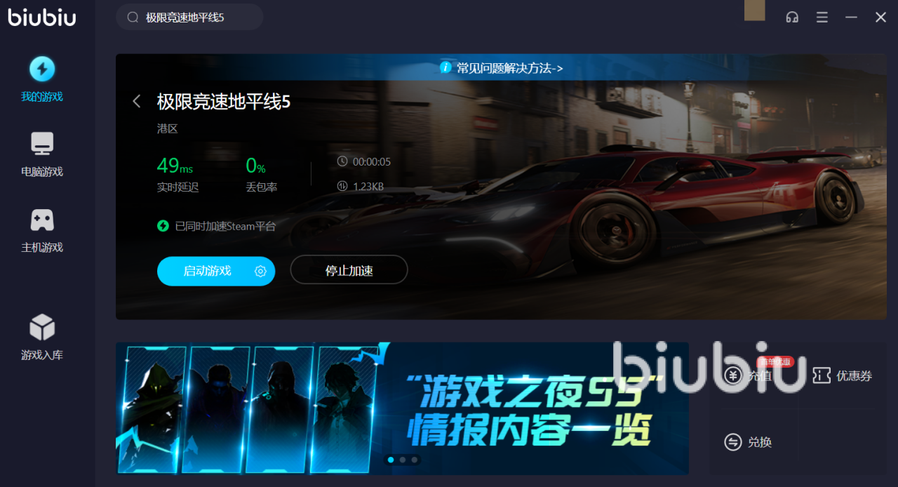 以上就是极限竞速地平线5掉线怎么办的全部内容了,怎么样,小编给大家带来的这个biubiu加速器是不是非常给力呀,作为一款专业的游戏加速器,它已经帮很多玩家实现的游戏过程中不卡顿、不掉线、快速加载等问题,让大部分玩家能够轻松愉快的体验游戏的乐趣,如果你已经心动的话,就快去猛戳链接进行下载试用吧。