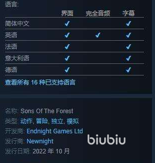 作为森林的续作游戏在地图和资源的上都有了一定程度的扩大,那我们在游戏中的发育可谓是争分夺秒的,而这个前提就是需要对游戏中的各种资源、工具非常的熟悉,这里就必须要游戏中支持中文才可以的。