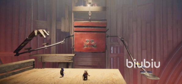 第二关总的来说游戏机制还是比较简单的,打BOSS时两人需要注意躲避各种具有伤害型的机关像桶压还有滚动的刮刀之类的,利用锤子和钉子前进的同时也要注意不要被不定时落下的钉子砸中。打BOSS时注意用翻滚来躲避工具的两只手的攻击,最后将工具箱的两边和最上面的锁都打开就通关了。