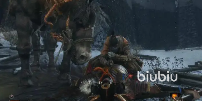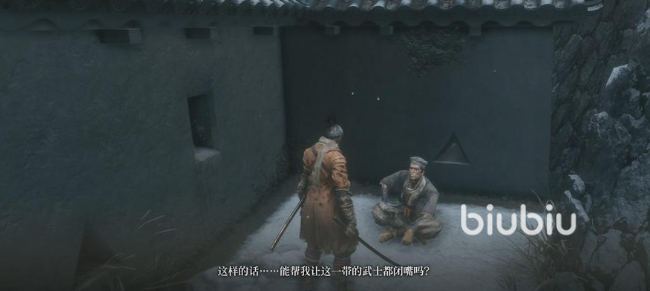 出了寺院,就能看见那尊鬼佛,作用与篝火相似,既可以作为传送,也可以作为“回血”,还可以作为“疗伤”的道具,不过在“休整”之后,敌人又会重新站起。右边的道路上,有功德箱,还有一名不死半兵卫在练习刀法。