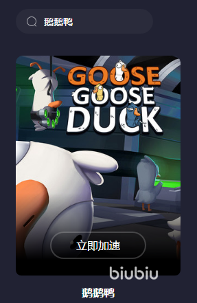各位在进入游戏之后,首先就需要明白鹅鹅鸭这款游戏主要采用了多人玩法机制,这一点设定就注定了针对每一个玩家的网络情况有着较高的要求,一旦各位网络情况不佳,就会出现再玩游戏的时候突然掉线的情况。不仅仅是掉线问题,大家重新了解也会耗费时间,整个过程也有可能会直接导致游戏的失败。所以大家想从源头杜绝掉线情况的话,小编建议各位优先使用biubiu加速器,同时各位可以在平台内轻松搜索到鹅鹅鸭。