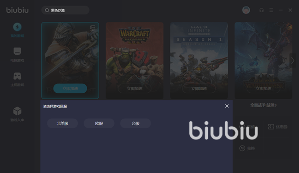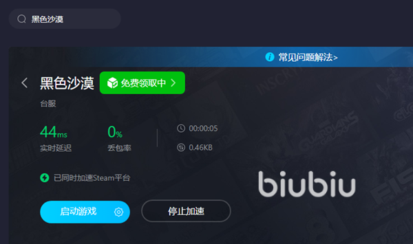 第一步就是要下载biubiu这款加速工具,点击上方小编为大家分享的链接就可以了。安装打开之后我们先完成账户登录,此时点击左侧的游戏入库,搜索黑色沙漠这款游戏。此时先不要进行加速器的操作,我们将PC和手机端的Steam平台退出,回到加速器中点击游戏入库的加速,随后登录Steam就可以领取这款作品了。