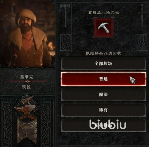 其实方法很简单,去主城找铁匠就完事了,小地图上也会有标志提示。在Beta测试中之开放了一个地区,所以很容易就能在主城区域找到这个NPC,他的名字叫基维克,直接点击交互就行了。之后会弹出来一个界面,第一栏就是分解装备,你可以选择按稀有度进行拆解,也可以直接所有物品全部分解掉,不过一般人可能不会选择后者,毕竟这意味着除了身上穿的装备其余全没了,得到的材料会在下方显示。