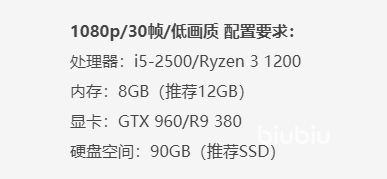玩家可以开最低画质,它的硬件要求如下,对于处理器以及内存的需求不高,但是由于显卡版本过于落后,只能开到30祯。如果把显卡提升到GTX1060这个档次,可以提升帧率到60,其实效果也没有好上多少,如果遇到特效比较多的场景,还是会直接掉到个位数。