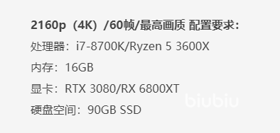 如果是4K版本的最高画质,对于硬件要求就更高了,可以看看下图就知道了,想要直接弄到这个档次,基本上显示器以及显卡的价格都十分高,不过相应的市面上流行的单机游戏都能开最高画质,视觉效果极佳。