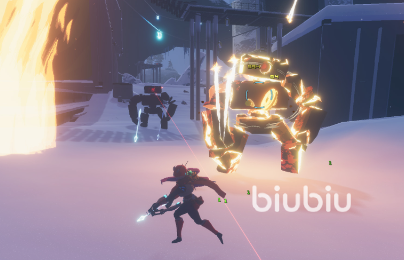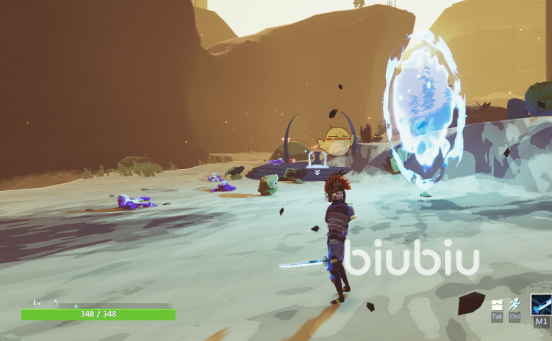 另外除了各个角色的基本套装外,每个人只可以带一件装备。其中武器是用Q来启动的,可以用来攻击,或者是防御,或者是其他的辅助。如果一个人物有了一套好的装备,那么他的实力和生存能力将会大幅度提升。地图上还有一些小的胶囊,可以用来开出一些金币或者血条。有很低的概率爆出装备,收集起来越多越好。