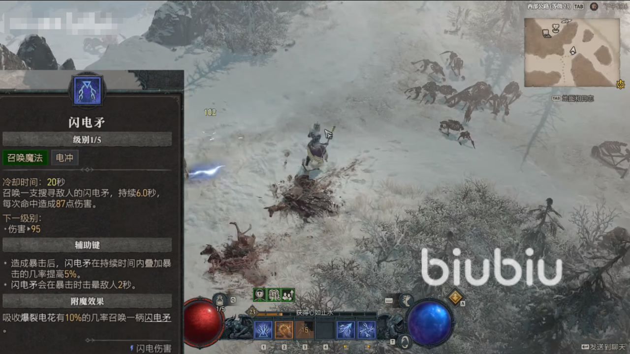第二层都是核心输出方式,同样有三种分别是冰火电,比如说冰霜球就可以释放后冻伤敌人造成34%的伤害,球体在持续一段时间之后还会爆炸,同时又造成二次伤害。闪电矛则是可以召唤长矛击中敌人,并且造成持续6秒的伤害,每秒都有87点,随着升级还可以增加效果。不过初期更推荐冰霜球,毕竟是范围攻击,清怪效果好。搭配升级寒冰碎片,可以连续发出5个冰片攻击,如果是冻结的敌人还能产生额外25%伤害,等敌人残血了补上闪电矛一击毙命。