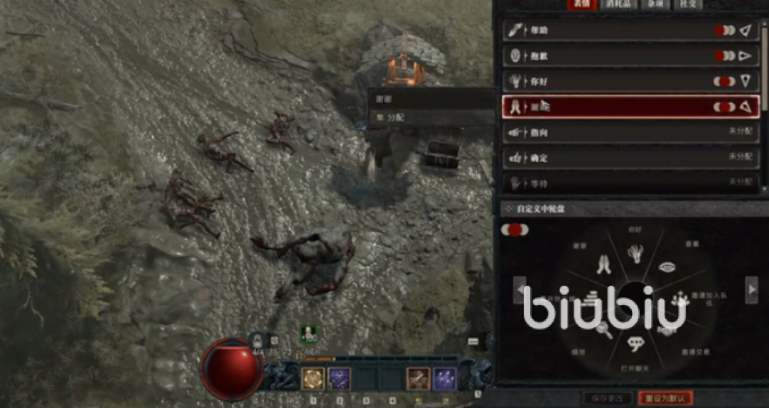 2.我们走近圣坛,按下E键,呼叫出轮盘,轮盘里面会有多个选项。表情分为默认触发表情和轮盘自选表情。这里只要找到感谢就可以了。然后我们点击感谢表情,开始祈祷,本环节我们进行道谢,表情选择的按键可以参考图片: