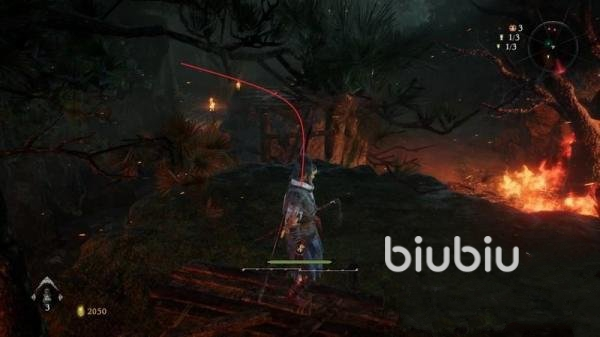 首先,我们需要在游戏中找到第一个牙旗,之后继续向前来到一个火场,在这里打败全部的小怪和boss之后才可以继续前进。在面对这里的怪时我们需要时刻注意自己的走位,因为数量非常的多,所以要有一定的耐心,慢慢打都可以通过的。击杀完毕后,沿着道路的左侧向前走,来到附近的高台跳跃前行。