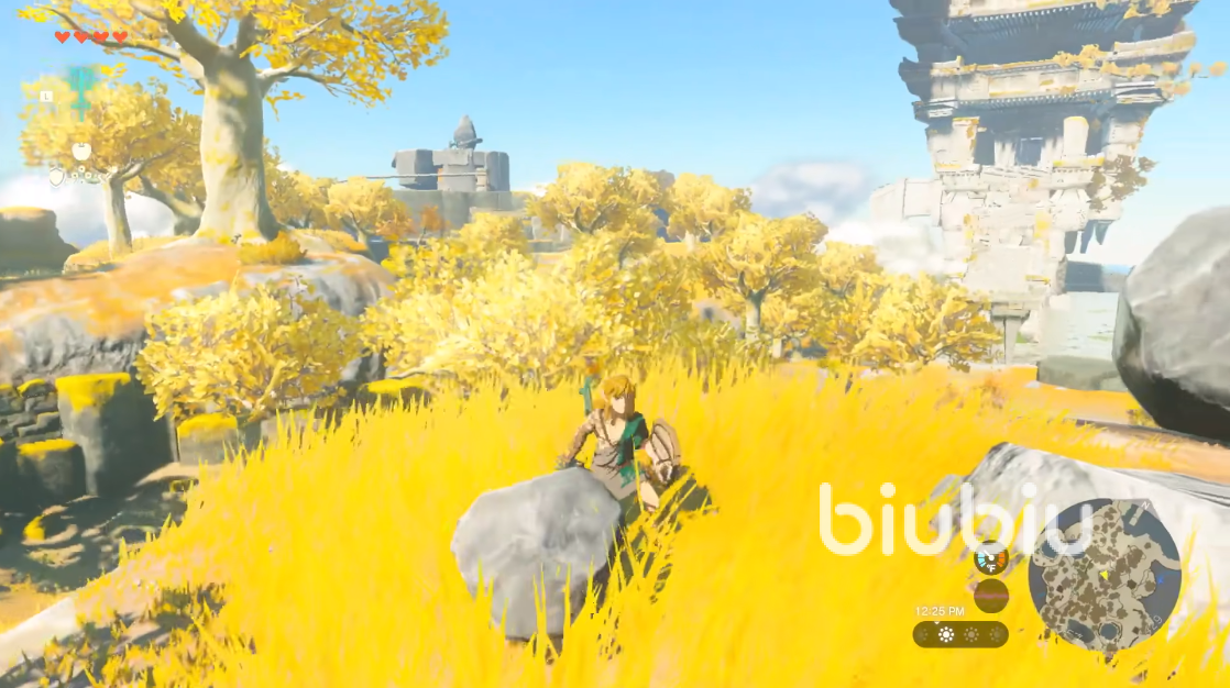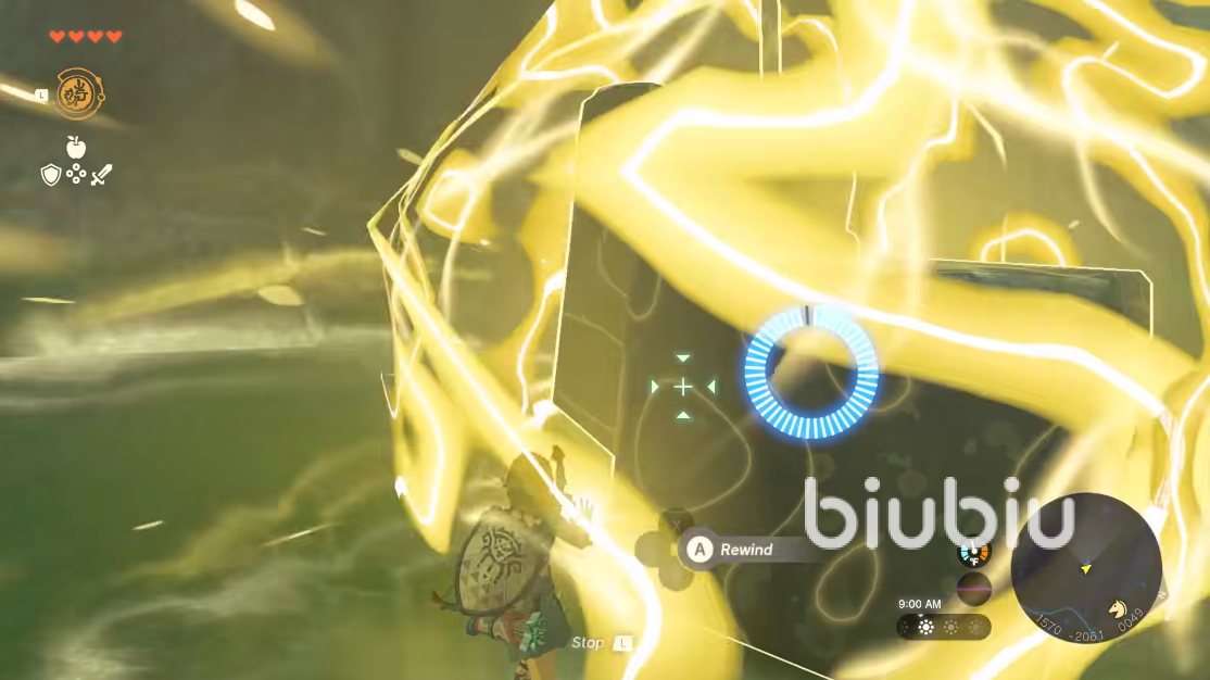 第一个类似于倒转乾坤的能力,可以翻转物品的运动轨迹。要知道本作的发生地设计的非常奇幻,海拉鲁大地开始碎裂,天空中像是有什么在吸引着这些石块,导致半空中有许多悬浮的石头浮岛,而主角想要移动就可以依靠这个能力,站到一块石头上,如果对石头试用技能,这块石头就会自动追踪曾经的位置,直线形的往上上升,有点坐电梯的感觉,穿梭在各个岛屿之中。