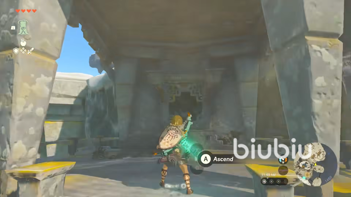 第四个技能就非常适合跑建筑物多的地方了,要知道以前玩游戏最烦的就是明明一墙之隔,但是却由于建筑不得不绕路才能到达目的地,这次视频中展示了林克的穿墙能力,有些墙体对准放技能就可以一跃而上穿墙而过。对于玩家探索整个海拉鲁世界实在是助力非常多。