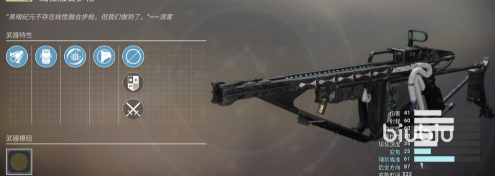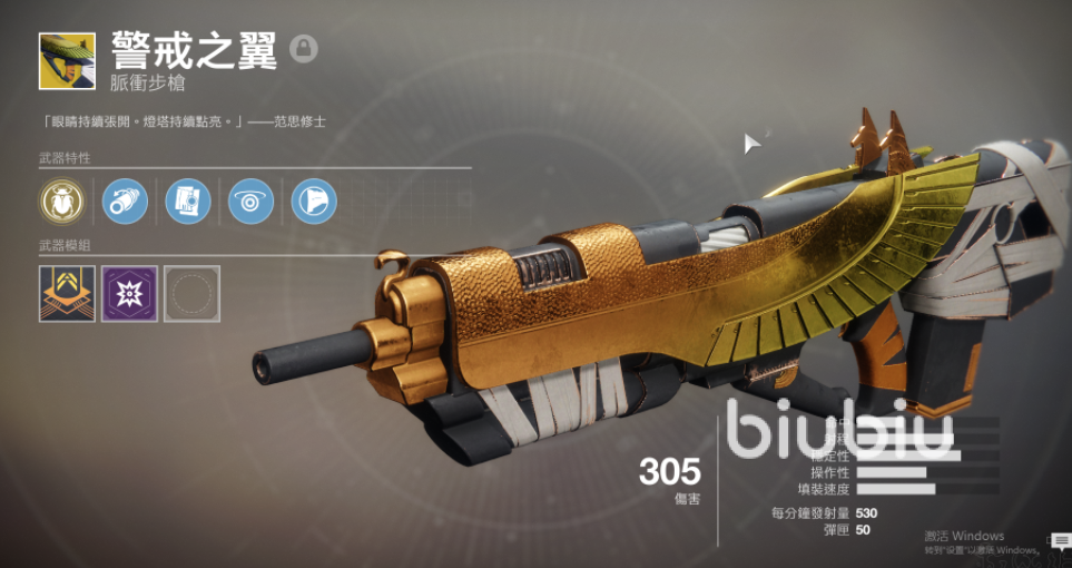 而同为似象者系列的霰弹枪这把特殊武器,它具有一个固有特性速射框架,它可以一下子打出所有的弹药,并且会让弹药向自动弹笛,这样能打出在爆发输出方面还是很高的伤害 ,缺点就是这把武器备弹量比较少。当然在击杀地牢的黄血怪时这把武器还是比较适合的,用战壕炮管能非常快速的击杀怪物。