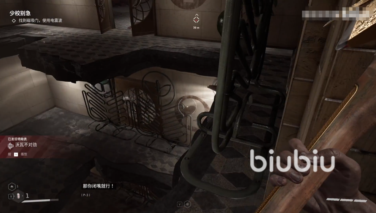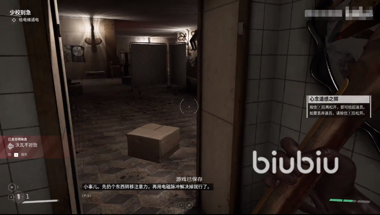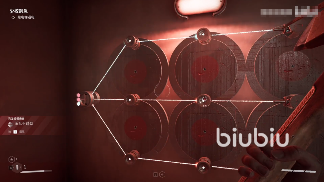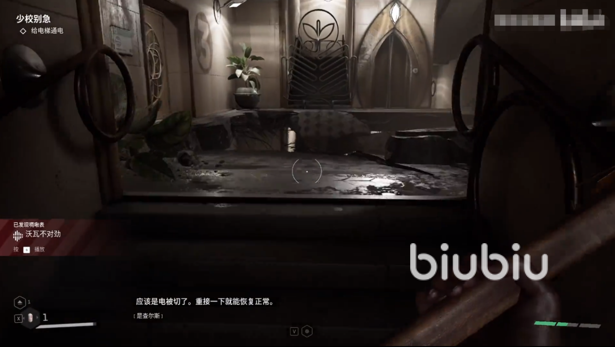 解开之后电来了,就可以乘坐电梯了,不过一左一右两个,需要玩家选择,这时候对话当中查尔斯就会非常不确定的说选右边,而主角表达了质疑,偏要选择左边,这其实就是游戏给玩家的提示,因为正确答案就是左边,如果坐了右边的,就会回到原点,重新选择电梯。这也是有趣味性的一个环节,而在附近的安全屋里面,玩家可以打开箱子获取霰弹枪子弹图纸。