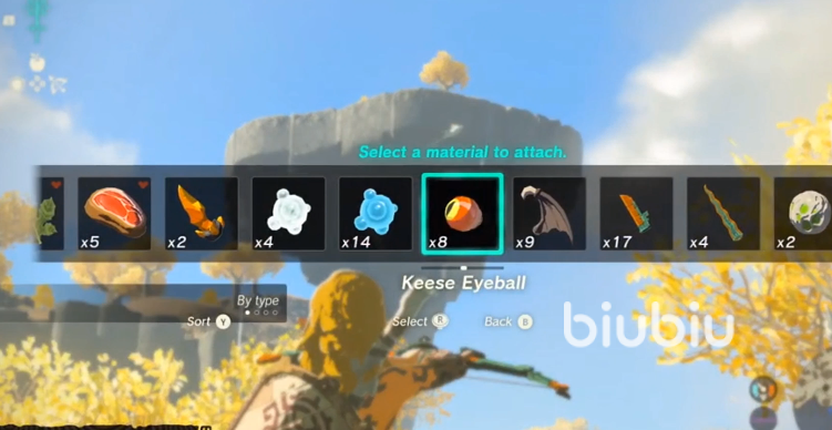 比如狩猎时,使用弓箭和物品:眼球,组合在一起,就可以创造出”追踪箭“,进行追踪天空中的飞鸟,将其击落哦。相比前作,只能通过击败强大的怪物获得装备的设定,《塞尔达传说王国之泪》可以根据玩家的想法,将品质相对差的物品进行结合,创造出属于自己的专属强力武器。