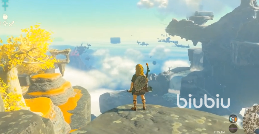 如何前往这些空岛呢,这里小编给大家介绍一种简单的方法。从空岛会不定时降下一些岩石,玩家可以使用林克的第一个新能力,按住手柄的”A“释放新技能:倒转乾坤,就可以倒转物体的运动轨迹,使原本下降的岩石,具有了升空的功能,玩家就可以到达天上,之后使用滑翔伞飞往空岛了哦。