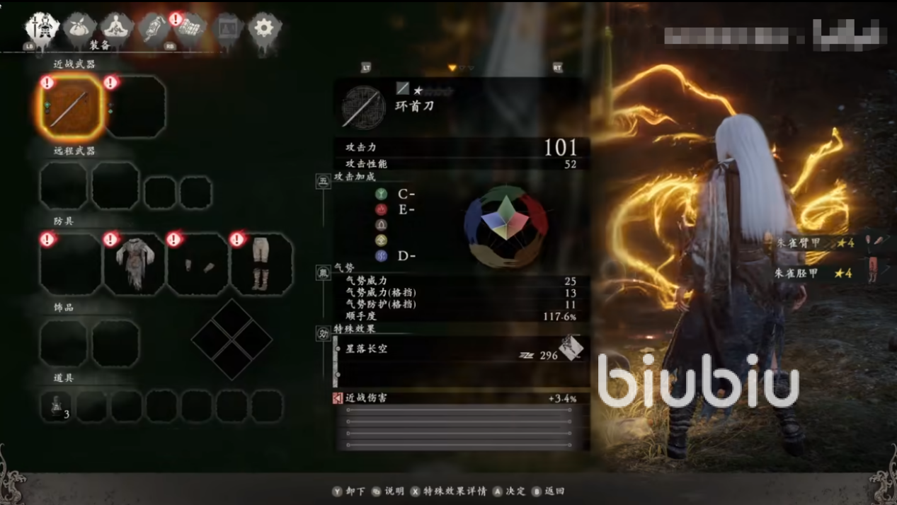 装备种类非常多,并且有着品级的划分,就是玩家说的几星。不过需要放心的是,就算是星级不同,装备的基础数值是没有影响的,但是每件装备都会有额外词条,星级越高,词条越多。对于第一次通关的玩家,切记装备搭配负重率不要超过100%,剩下来的主要走防御,减伤才是最重要的,防止被怪物秒掉。
