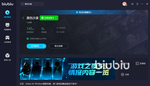 以上就是关于biubiu这款加速器介绍的所有内容了,今天为大家介绍了这款产品的优点和使用方法,大家也能够看出来用来加速黑色沙漠这款游戏十分非常合适的。而且本作没有国服版本,所以也是比较推荐大家使用!