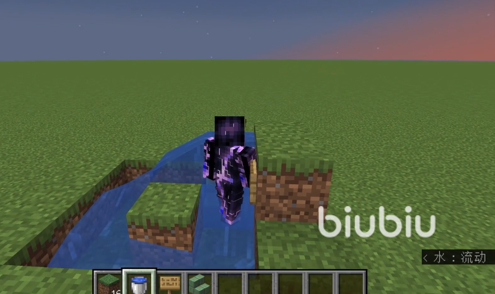 聪明的玩家学会了通过外力移动人物的位置,就能够避免这种情况发生了。方法也非常多,首先最基础的就是做一个有高低落差的小方框,让水在里面流动,这样人物站进去就会被水带着动起来了。