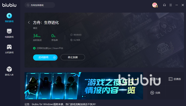 关于方舟生存进化要不要加速器的问题就解答到这里了,如果大家准备体验这款作品还是非常推荐使用加速器的,主要就是游戏原生的联机网络体验太差了,通过开启biubiu不仅可以进行修复,还能够体验到多种便捷的服务,可谓是一举多得了。