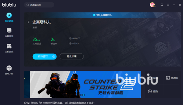 想要流畅进行账号登录和多人在线游玩,也需要大家拥有强劲给力的网络环境。如果延迟比较高就极有可能造成卡顿的情况,在对枪的过程中落入下风,甚至还有无法和物品互动、开关门不顺畅的情况。通过在biubiu加速器中搜索游戏名称并且点击一键加速就能够解决诸多的网络故障,带来体验的极大提升。而且这款工具打开之后不会对游戏本身造成影响,也不会被认定为cheat更不会导致封号。