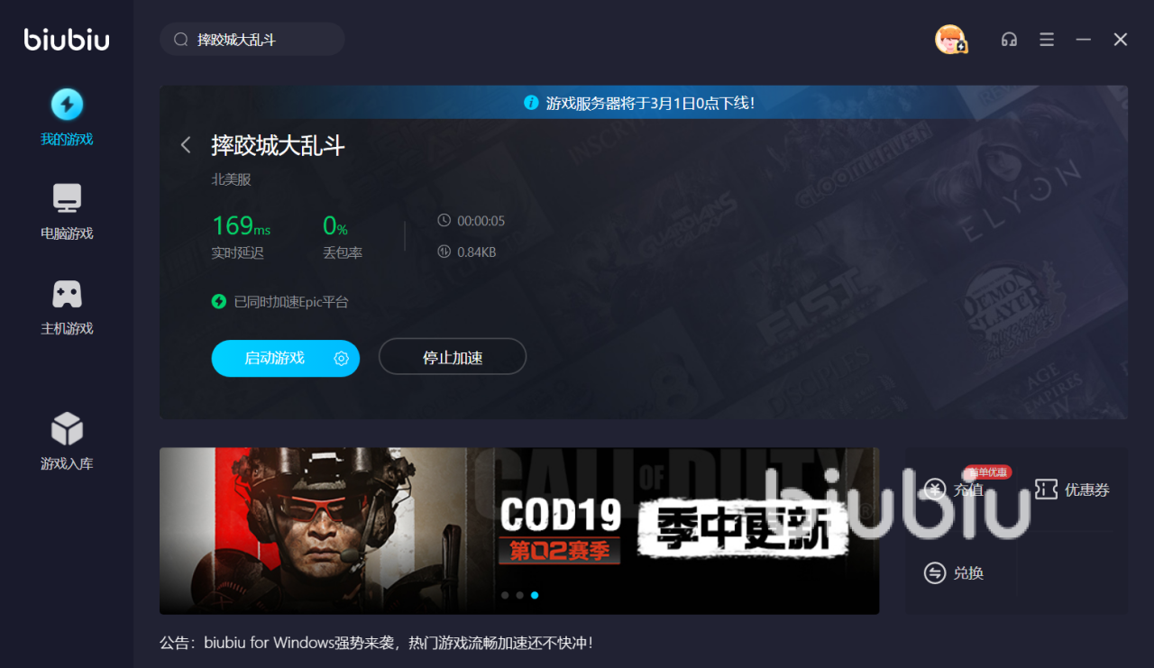 许多小伙伴在对局中都碰上过突然的运行波动,然后一不留神就这样被反杀了,实在是可惜。所以小编推荐给各位一款biubiu加速器,加上它的辅助,游戏运行会又快又稳定,网络延迟、卡顿的状况会大大缓解,体验感将会升级一大截,和没用的时候完全不同。