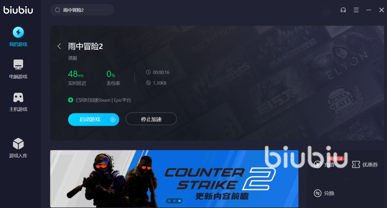2023年04月11日 11:31 来源:沙王至吸盘魔偶作为可以多人玩耍的冒险游戏,很多人都非常青睐于雨中冒险,那么雨中冒险2需要加速器吗,的确,很多小伙伴在玩游戏的时候经常会出现加载很慢、掉线、等问题,尤其是在操作的关键时刻,突然掉线了,那真是一件非常恼火的事情,为解决大家的烦恼,今天小编给大家带来一个能够稳定网络的游戏加速器:biubiu加速器。