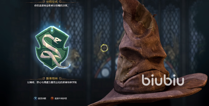 在做完序章剧情之后,玩家会和费格教授来到学校,但是以插班生的身份进入校园的,只有自己一个人参与学院分配。虽然在即时演算动画中是由分类帽做出的决定,但实际上是由玩家中自行选择的,无论怎么选都不会影响游戏的进程和结局以及人物属性,也不会因此对角色的行为作出限制,所以根据自己的喜好来就行。