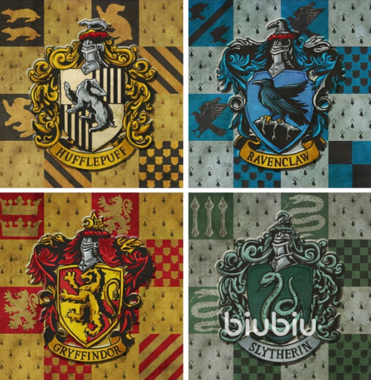 和《哈利·波特》正传一样,此时该校已经由四个学院组成,但其实校服的设计上差别不大,也就胸口标志有所不同。格兰芬多象征勇气和骑士精神,徽章为一个狮子标记,象征着勇敢以及骑士精神,由于是正传中哈利所在的学院,所以选择的人数是最多的。赫奇帕奇象征着忠诚和公平以及努力,以獾作为标记。拉文克劳代表智慧和创造力,其徽标为一只鹰。斯莱特林的象征是一条蛇,代表着领导力以及野心和谋略。