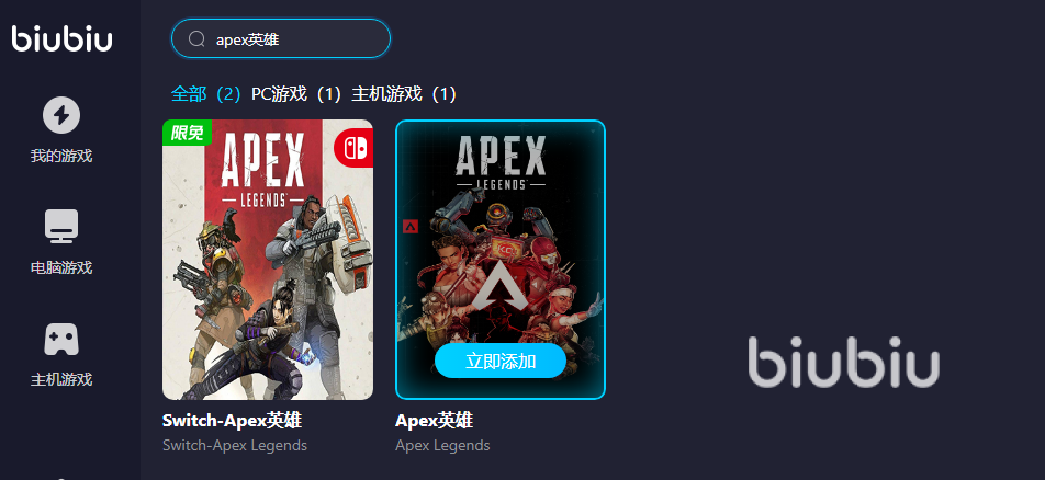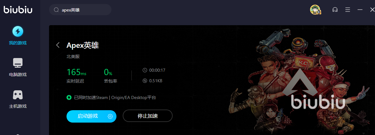Biubiu加速器许多人可能之前都有用过,这些年来它经过不断升级和完善,将自己的节点服务器强化的非常优秀,在游戏库里输入“apex”就能找到switc端和pc端两款游戏,玩家对应选择后就能去进行加速,这段时间biubiu加速器还开放了新用户三天的免费使用,要是感觉确实好用的话再去考虑开通会员来使用,综合性价比很高,主要是加速效果强劲,降低延迟效果很明显。