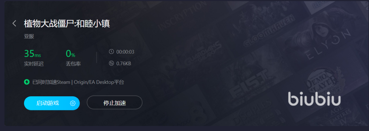 这款加速器可以解决植物大战僵尸和睦小镇延迟高这一问题,这款加速器的主要功能就是降低游戏的延迟,并且将游戏的网络延迟维持在一个稳定的范围。Biubiu加速器的页面非常简洁,玩家在安装好这款加速器后就可以搜索关键词找到自己想要加速器的游戏。目前市面上主要的游戏都可以通过这款加速器进行加速。
