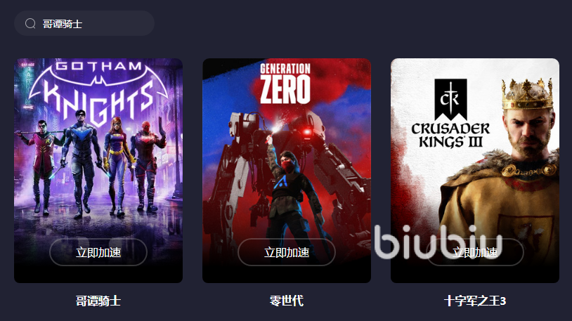 在实际的游戏体验中,使用加速工具的案例也是有非常多的,绝大部分朋友都会考虑通过它来稳定游戏的运行,不过在选择的时候确实会犯难,因为大部分是需要充值的,可如果加速的效果不明显,自己岂不是白白损失了充值费用,所以这个时候可以考虑通过官网来下载biubiu加速器,针对新用户它也是给予了三天的免费试用机会,直接去首页搜索游戏名,大家就能见到相关的游戏专栏,点击就可以为用户开启加速。