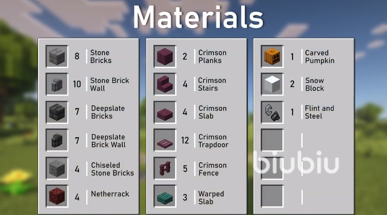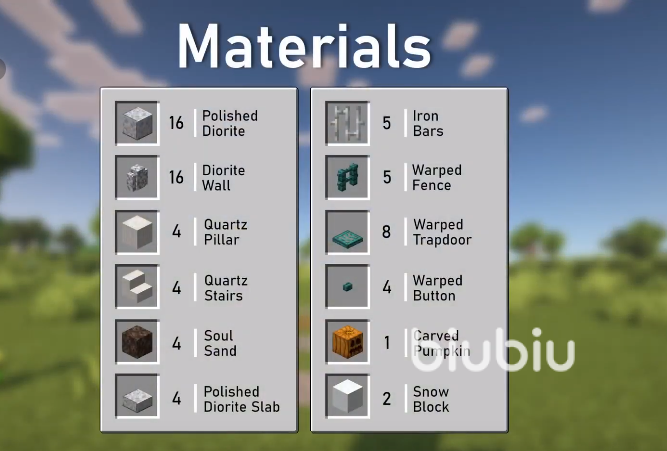 首先使用磨制闪长岩做底部,再用石英柱围绕四周铺设,上方铺上石英阶梯,然后用土块和闪长岩铺在上方。接着使用闪长岩和翘曲的栅栏作为四边的支柱,顶部使用闪长岩板和闪长岩封顶,并四周铺设翘曲活板门。此外,在上方还设置了铁棒和四面的开关,以增强安全性。最后,中间放入雪块和雕刻南瓜,让整个建筑更加美观。