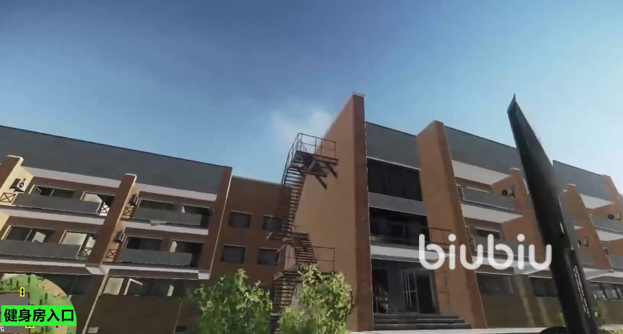 健身房:在养老院大概东边的方向,楼的正前方有辆卡车,撤离的位置在正下面的地下。