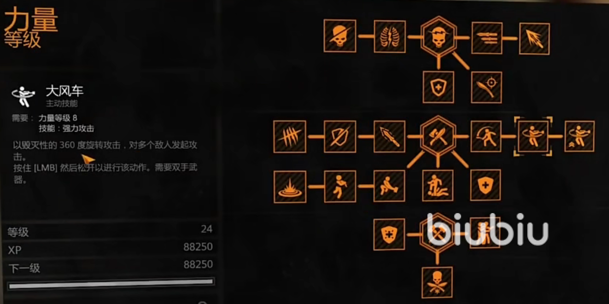 最后小编要提醒大家注意的是游戏中的生存技能同样是需要通过辅助道具和主线任务进行提升的,建议可以使用双手武器,将力量技能里面的大风车技能点出来,这样可以更快的击杀丧尸,赚取足够的力量点数。提高生存机会哦,有兴趣的小伙伴快去试试吧!