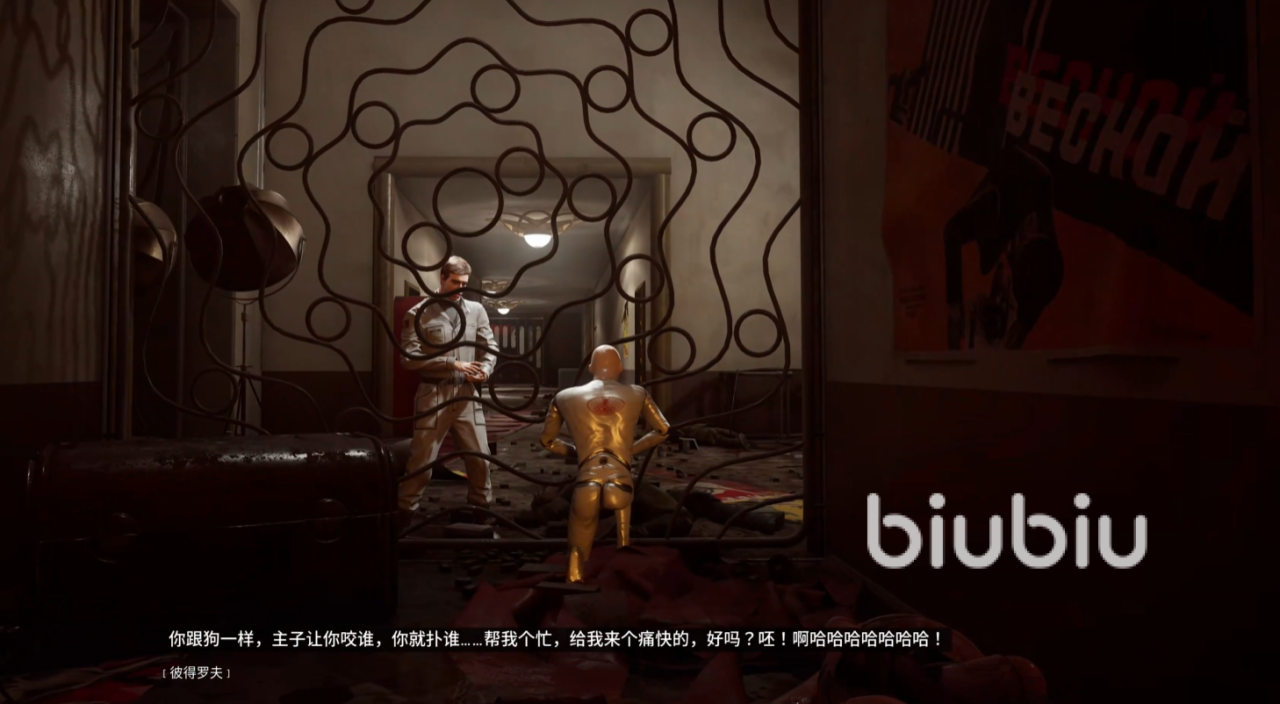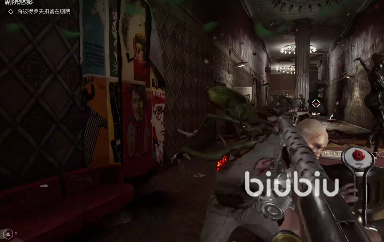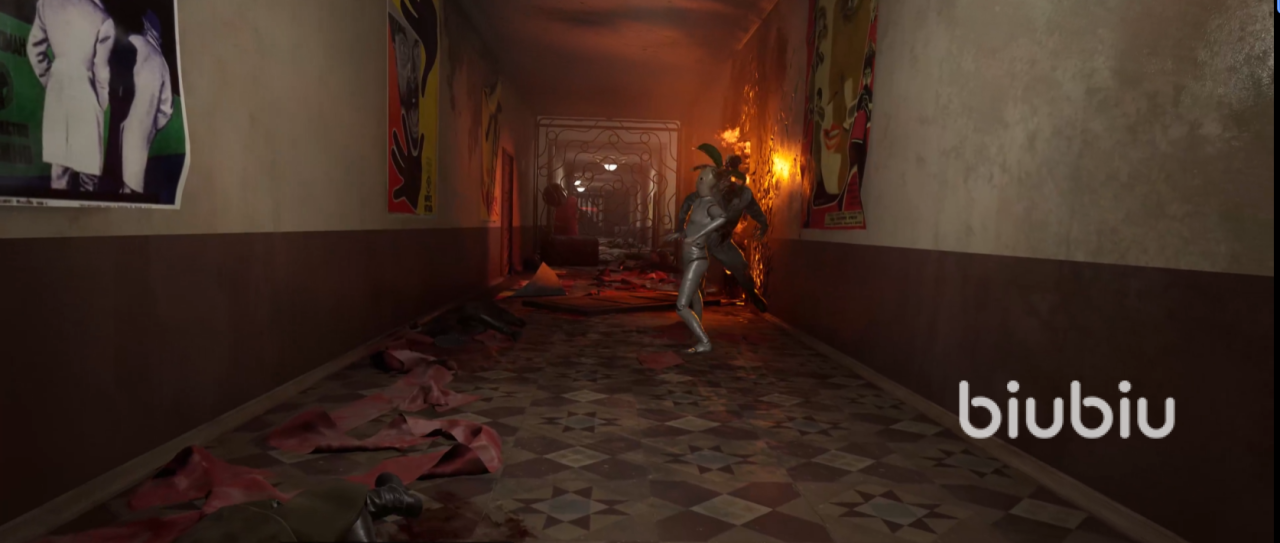 我们继续深入剧院,推开一扇门后,发现彼得罗夫就站在不远处,P-3正准备冲上去抓住他,但是没想到地面上通了电,是一个陷阱,我们又被彼得罗夫暗算倒地,P-3需要一些时间才能站起来,但现实好像并没有留给我们太多的时间,一个实验助手朝着P-3冲了过来,就在这时,火海中冲出了一个变异体,变异体了解了实验助手后,我们也是成功站起来,了结了变异体,而此时原本背后锁住的门也打开了,我们继续按照任务的指引通过剧院走廊,随后会出现非常多的变异体阻挡我们的脚步,当然变异体是不足为惧的,但不出意外是要出意外了。