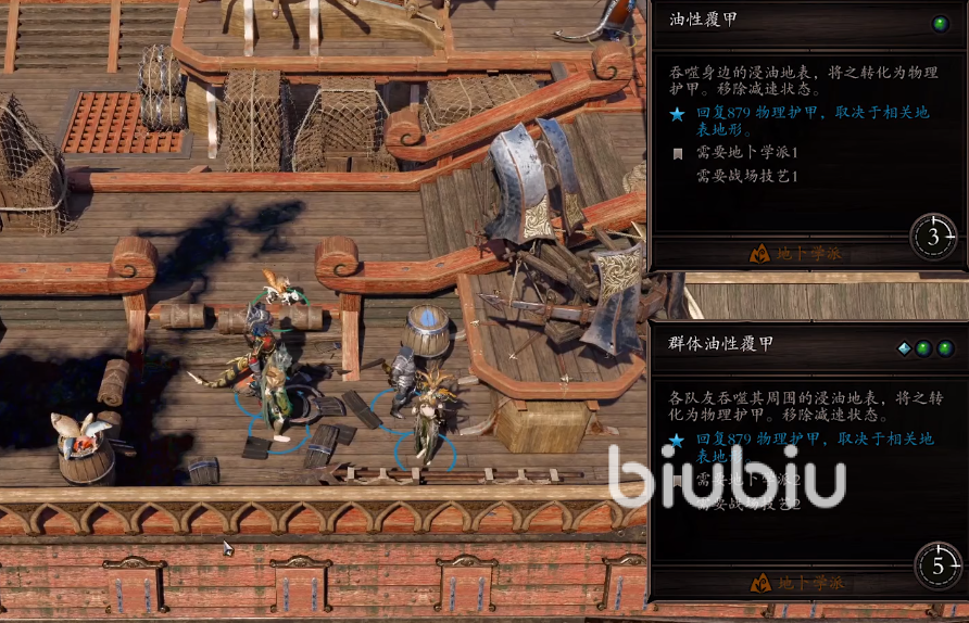 战争加地卜可以给自己增加护甲,得到的分别是两个版本单人以及群体的油性覆甲,把角色周身的浸油地表吞噬,并且转换成自身的物理护甲。不过要注意是回复状态,基本上只适用于物理护甲高的角色,要是不高回复就没什么用,遇到元素攻击的情况下也无效,并且前提是地上要有油,没有还需要自己创造,比较鸡肋。